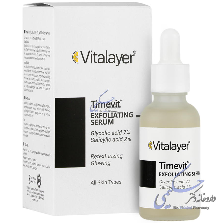 سرم لایه بردار ویتالیر با قابلیت لایه برداری ملایم سرم لایه بردار تایم ویت ویتالیر مناسب برای انواع پوستدارای AHAبه فرم گلیکولیک اسید 7%حاوی BHAبه فرم سالیسیلیک اسید 2%سرم سالیسیلیک اسید ویتالیر برطرف کننده منافذرفع چربی های زیرپوستی عامل ایجاد جوشبهبود درخشندگی، جلوه ظاهری پوست و افزایش شفافیت دربطری شیشه ای قطره چکان دار به حجم 30 میل