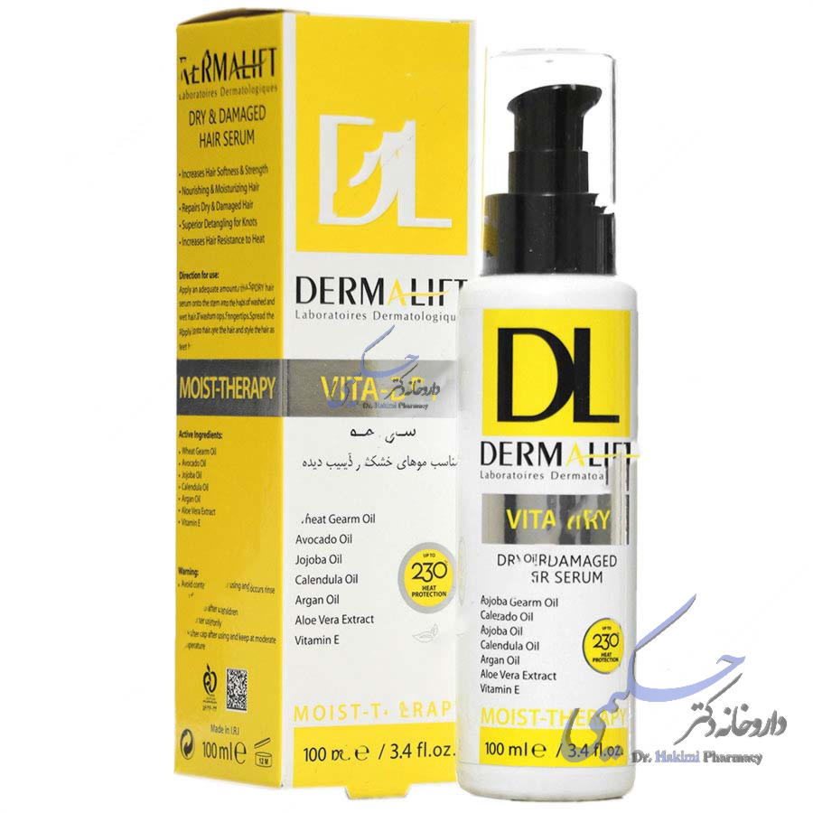 سرم مو درمالیفت ویتا درای تامین کننده رطوبت لازم برای تارهای موشفاف و درخشان کننده ساقه های موموثر در سهولت حالت پذیری و شانه پذیری موهاقابل استفاده قبل از استفاده از اتو و سشوارسرم درمالیفت موی خشک تولید شده در حجم 100 میلی لیترحاوی عصاره های گیاهی آلوئه ورا و گل همیشه بهارگزینه ای مناسب برای موهای خشک، آسیب دیده و شکنندهحاوی روغن های گیاهی و مغذی جوجوبا، آووکادو و جوانه گندمسرم مو درمالیفت ویتا درای بدون نیاز به شستشو