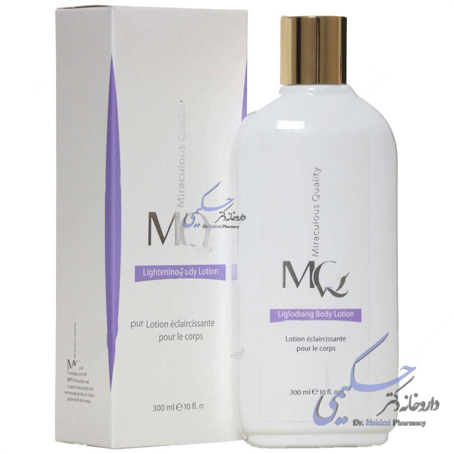 لوسیون روشن کننده بدن ام کیو، اثربخش در روشن سازی پوست بدن به کمک عصاره برگ گیاه توت خرسموثر در لایه برداری سلول های مرده و افزایش درخشش پوست به واسطه داشتن آلفا هیدروکسی اسیدها لوسیون روشن کننده بدن MQ، مناسب برای رفع تیرگی های زیر بغل، کشاله ران و ناحیه تناسلیتامین رطوبت پوست با بکارگیری خواص روغن دانه آفتابگردان و روغن بادام شیرین