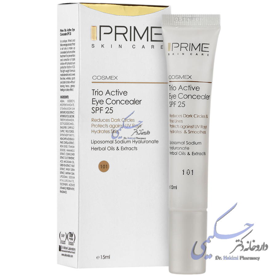 ترکیبات موثر کانسیلر پریم مدل Trio Active:ویتامین E: آنتی اکسیدان، ضد چروک و خنثی کننده آثار مخرب رادیکال های آزاد است.عصاره هاماملیس: تنظیم کننده جریان خون و ضد میکروب است.عصاره مخمر: افزایش دهنده انرژی سلول های پوست است.عصاره سنتلا: آنتی اکسیدان و محرک سنتز کلاژن است.روغن فندق استرالیایی: نرم کننده و جوان کننده است.روغن جوانه گندم: سفت کننده و مرطوب کننده است.عصاره چای سبز: ضد التهاب و ضد چروک است.عصاره گل رز: ضد التهاب و شفاف کننده است.روغن گل گندم: قابض و نرم کننده است.