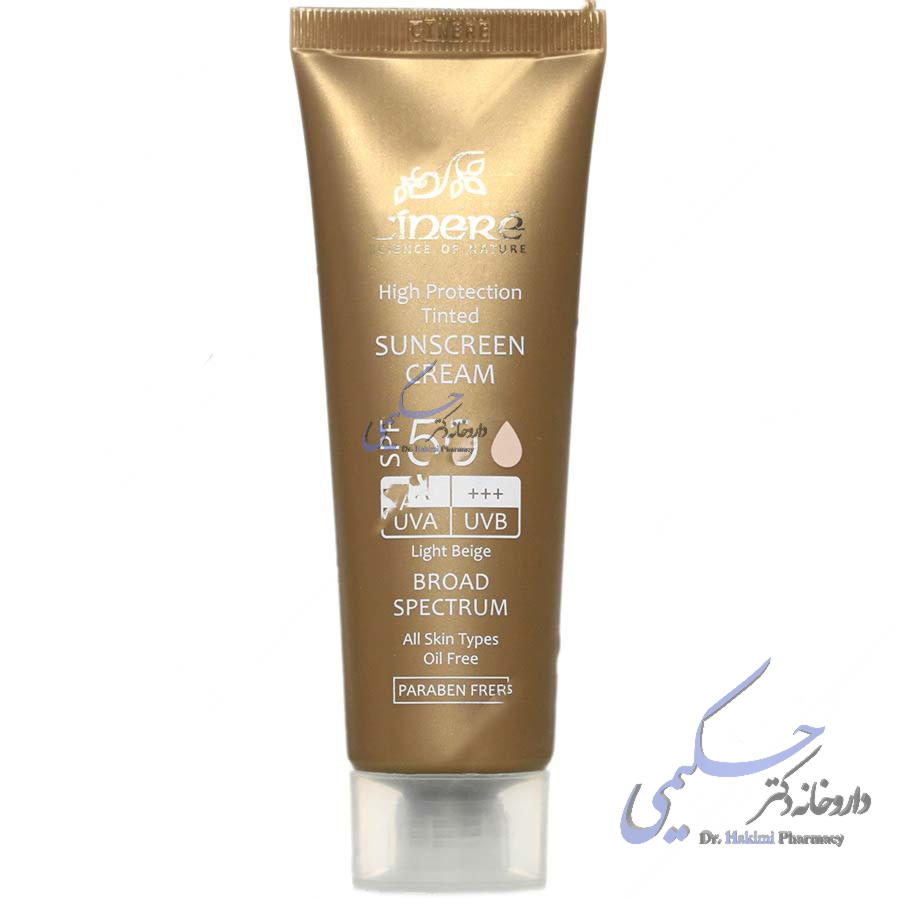 کرم ضد آفتاب رنگی سینره spf 50، محافظت کامل از پوست در برابر پرتوهای مضر UVA و UVB